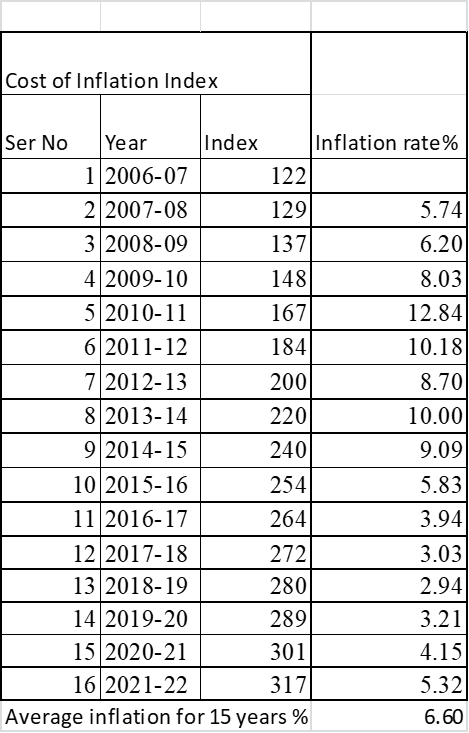 After 3 years the realized capital gains in debt MF is treated as long term capital gains. One gets the benefit of Cost of Inflation Index( CII ) or commonly referred to as indexation benefit. Here the capital gains above the inflation rates only get taxed at 20% rate irrespective of one’s tax slab applicable. This amounts to approximately 10% tax in most of the times. Table 3 depicts historical CII and inflation. In table 3 with assumed returns of 6.5% and average inflation rate of 6.6%, income tax liability almost becomes negligible.