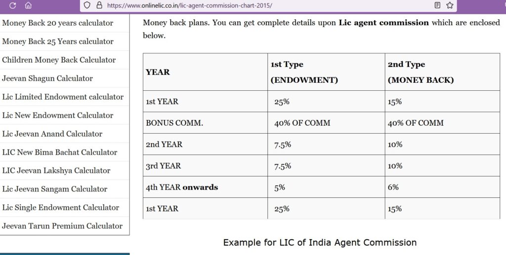 LIC AGENT COMMISIONS (screenshot from above link)