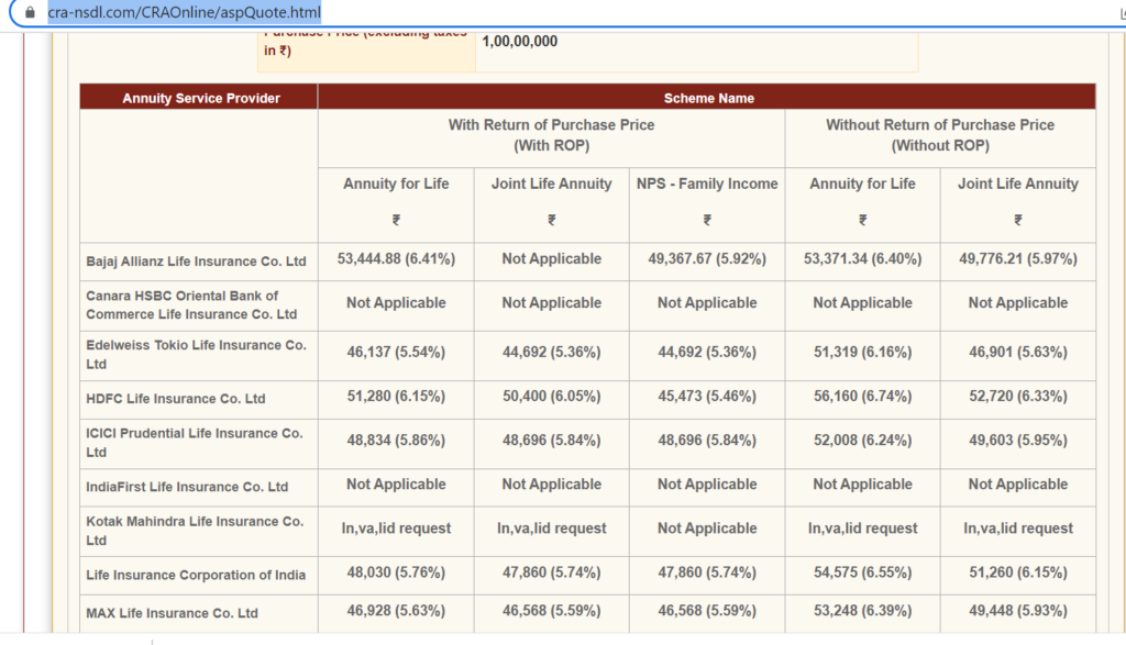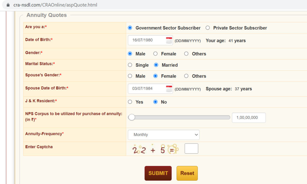 You can go to NPS website from link below to generate an annuity quote: –